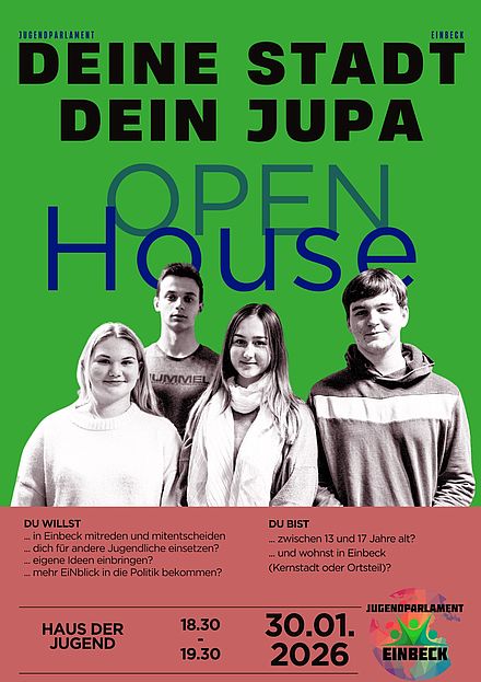 www.jup-einbeck.de ist die offizielle Jugendinformationswebsite der Stadtjugendpflege Einbeck. Hier informieren wir euch über interessante Projekte und Veranstaltungen in Einbeck und Umgebung. Zudem findet ihr auf diesen Seiten zahlreiche Infos über Freizeitaktivitäten im Bereich Sport, Kultur, Musik usw. mit Beschreibungen und Ansprechpartnern. Bei den Spotlights könnt ihr euch beteiligen und eure Ideen mit einbringen oder uns eure Meinung mitteilen. Viel Spaß mit dem Angebot.
