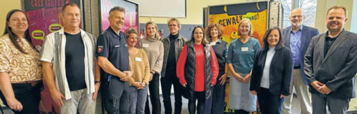 (von links): Rebecca Rohmeier, Teamassistenz Familienberatungsstelle, Martin Dehne, Konrektor der Erich-Kästner-Schule Northeim, Thomas Sindram, Polizei Northeim, Sonia Fraysse, Janina Trebini und Thomas Kurzhals von der Familienberatungsstelle Northeim, Viktoria Bertram, die Leiterin des Jugendamtes, Cordula Weise, Familienberatungsstelle, Andrea Rasch, die Leiterin der Familienberatungsstelle, Landrätin Astrid Klinkert-Kittel, Christoph Dörges, Schulleiter des