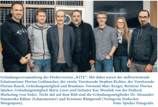Im Rahmen der Gründerversammlung gab es zudem eine große Überraschung für alle Beteiligten. Kristiane Rüttgerodt, Verlegerin der Einbecker Morgenpost, hatte im Vorfeld von Weseloh von den Planungen für die Vereinsgründung erfahren und augenblicklich ihre Unterstützung zugesichert, sodass auch die Einbecker Morgenpost als Gründungsmitglied eingetragen ist.