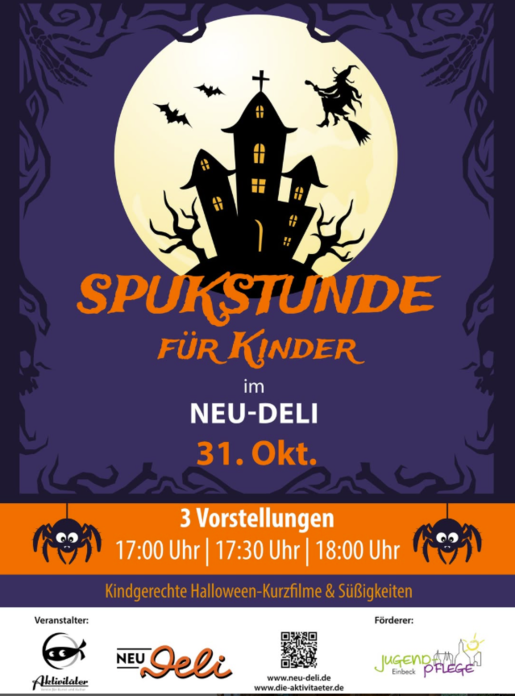 Der Aktivitäter e. V. verwandelt das Kino in ein Geisterhaus und präsentiert je Vorstellung einen kurzen, kindgerechten Halloween-Film.